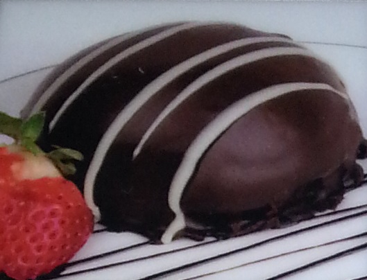 One of our favorites! Rich chocolate cake base filled with milk chocolate mousse and white chocolate mousse. Covered with hand crafted chocolate ganache. Drizzled in white chocolate.